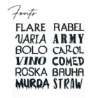 FLARE, VARIA, BOLO, VINO, ROSKA, MURDA, RABEL, ARMY, CAROL, COMED, BAUHA, STRAW
