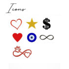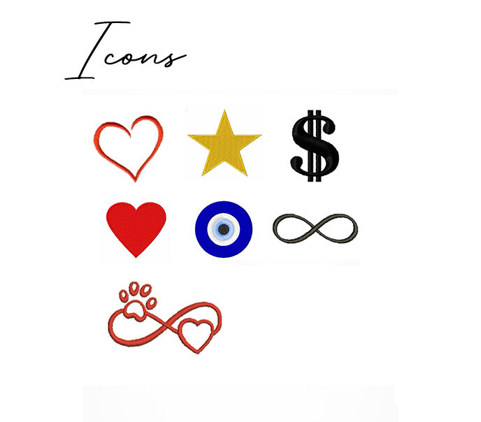 HEART OUTLINE, START, MONEY SYMBOL, EVIL EYE, INFINITY, PAW & HEART